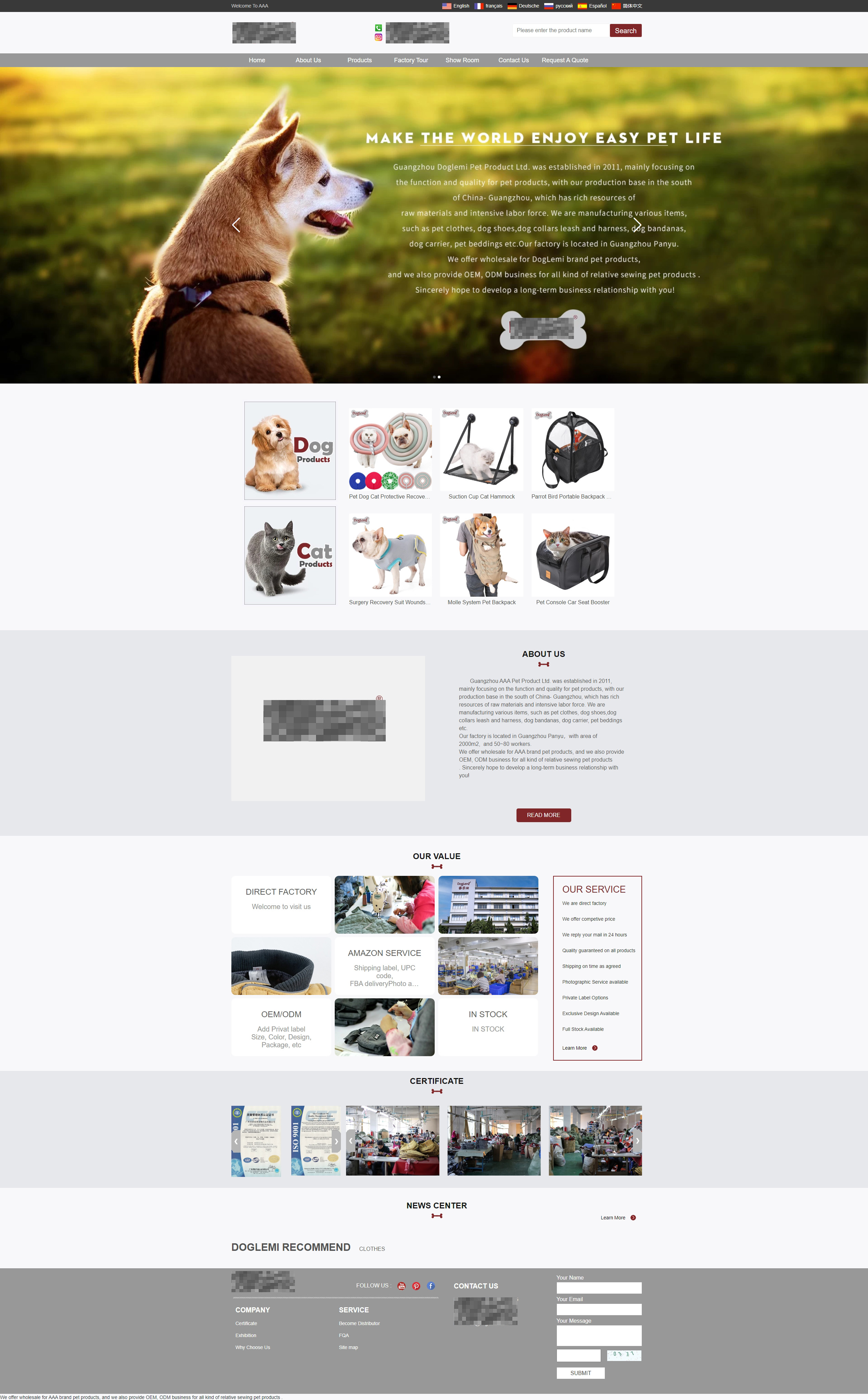 广州DLM宠物用品有限公司成立于2011年,专注于宠物产品的功能和品质,生产基地位于中国南方的广州,拥有丰富的原材料资源和密集的劳动力。我们生产各种宠物用品,例如宠物服装、狗鞋、狗项圈、牵引绳和胸背带、狗头巾、狗笼、宠物寝具等。